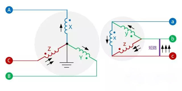 本文利用Y/d-11變壓器繞組特征,來(lái)推算短路電流特征,不需要繁雜的公式推導和計算。