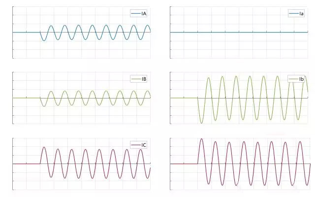 根據d側三角繞組的電流,繪制出Y側繞組的電流: